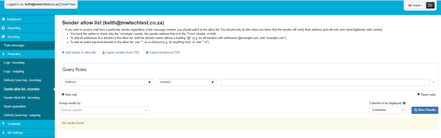Managing email security is much easier when you know where everything lives. The Protection section in Antispam Cloud gives you quick access to tools that help you view logs, allow trusted senders, block unwanted senders, and check your spam quarantine.